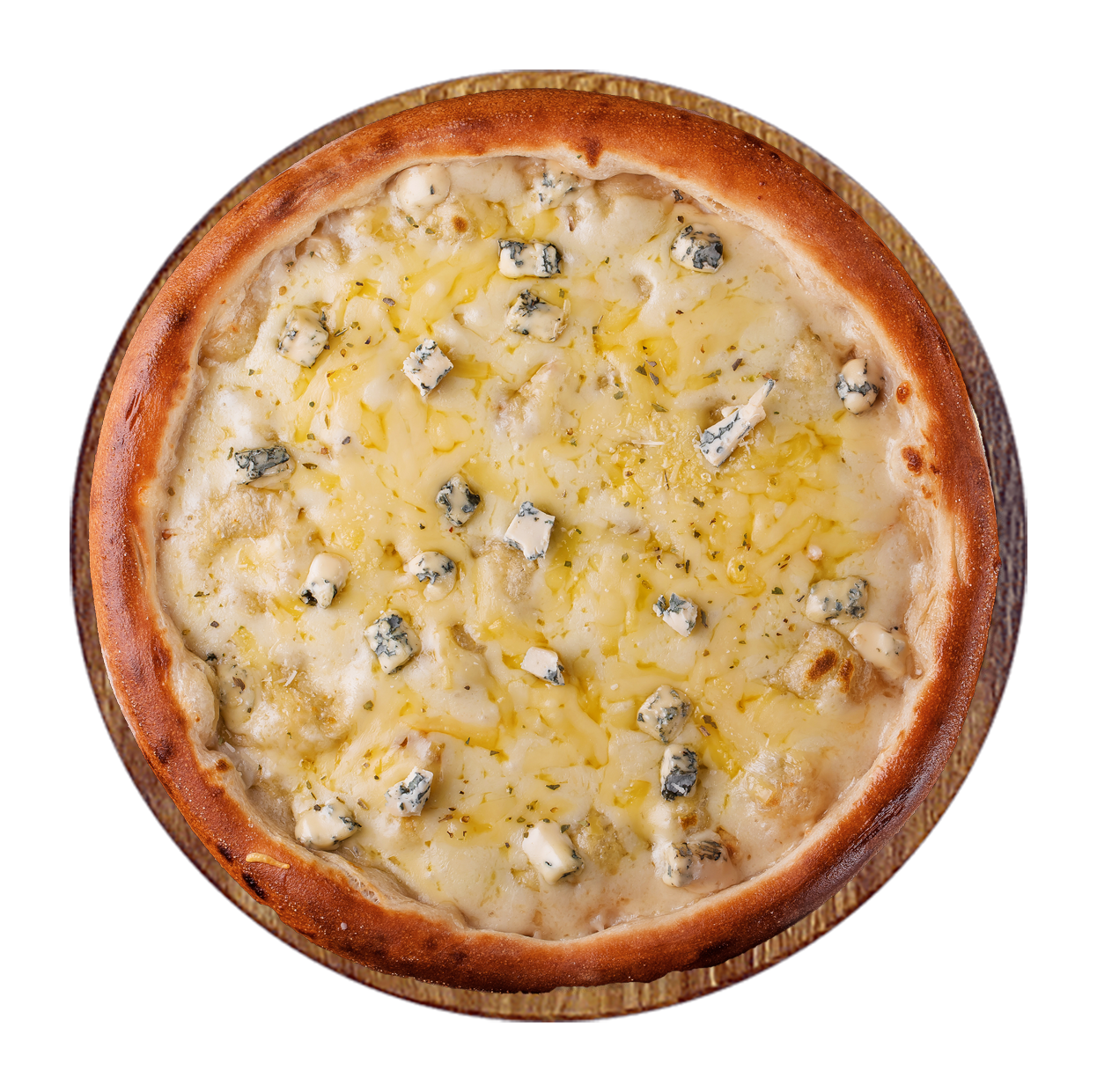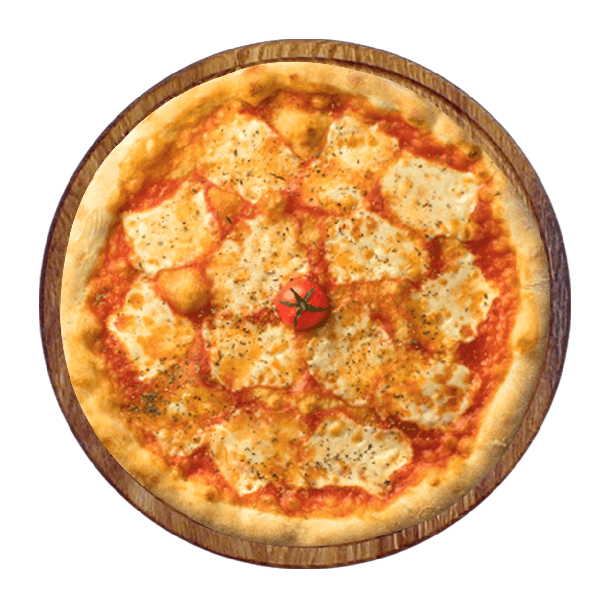 Tomate, mozzarella, gorgonzola, brie, parmesan.