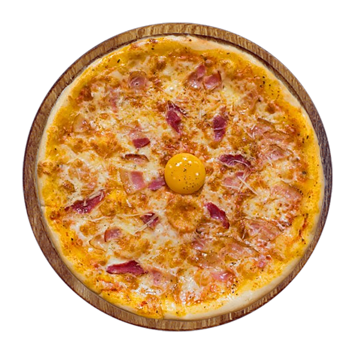 Tomate, mozzarella, chorizo, poivrons, oignons, olives, œuf.