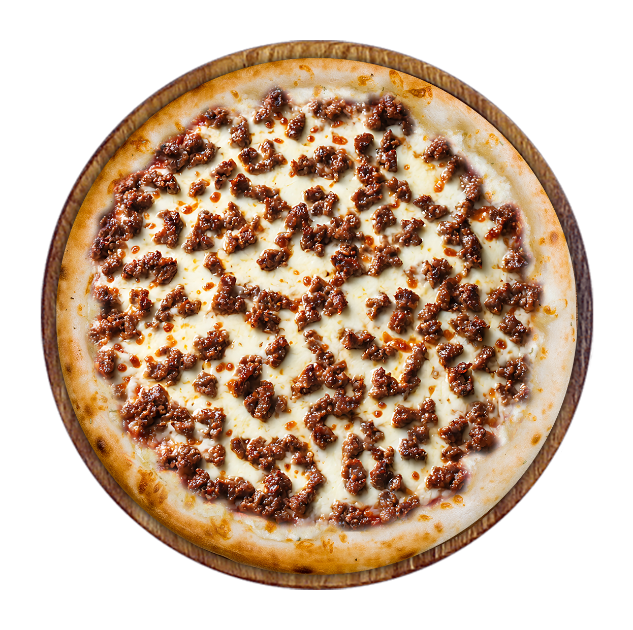 Tomate, mozzarella, bœuf haché, oignons, boursin.