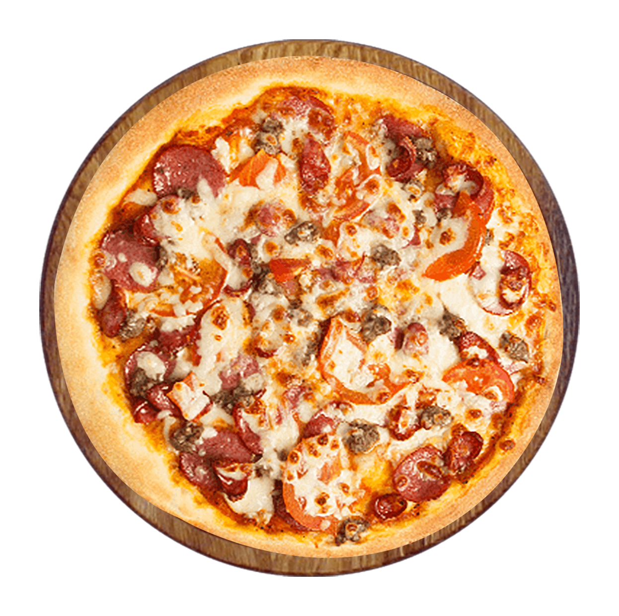 Tomate, mozzarella, bœuf haché, merguez, poulet.